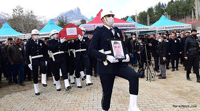Adıyaman’ın Kahta ilçesinde görevi başında şehit olan Polis Memuru Eyüp Saz'ın (26) cenazesi, Kahta İlçe Emniyet Müdürlüğü’nde düzenlenen resmi törenin ardından memleketi Kahramanmaraş’a getirildi.