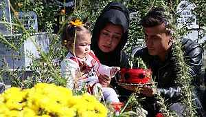 yaş günü olan minik Asel'i de yanlarına alarak şehidin kabrini