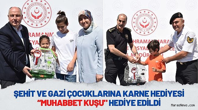 Açılış konuşmalarının ardından Valimiz Ömer Faruk Coşkun, Büyükşehir Belediye Başkan Vekili Harika Fatma Açıksarı, Onikişubat Kaymakamı Serkan Keçeli, İl Jandarma Komutanı Kıdemli Albay Mustafa Özdurhan, İl Emniyet Müdürü Salim Cebeloğlu, kamu kurum ve kuruluş müdürleri ile sivil toplum kuruluşu temsilcileri tarafından Şehit ve Gazilerimizin çocuklarına karne hediyesi olarak muhabbet kuşlarının ve Lunapark biletlerinin takdimi yapıldı.