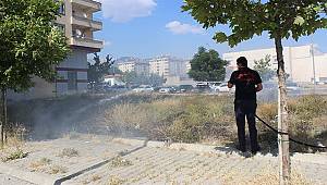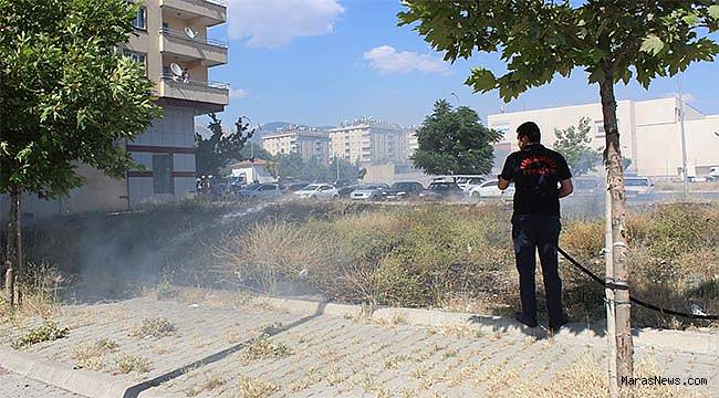 boş bir arazide çıkan yangın, rüzgârın da etkisiyle kısa zamanda etrafa