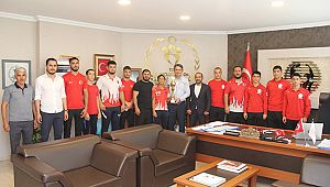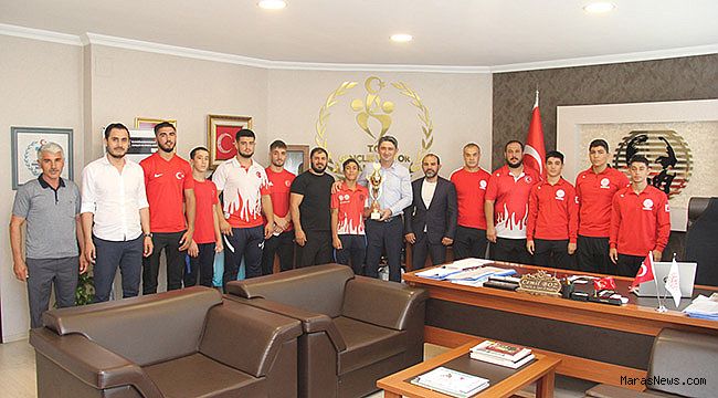 Şampiyonluk kupasını omuzlayan sporcularımız ve Antrenörlerimiz Gençlik ve Spor İl Müdürümüz Cemil Boz’u makamında ziyaret ettiler. İl Müdürümüz sporcularımızı ve antrenölerimizi ayrı ayrı tebrik ederek Güreş Yıldızlar 1. Liginde başarılar diledi.