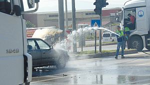 meydana geldi. 46 FK 109 plakalı aracın benzin kaçağı nedeni ile bir anda alev