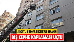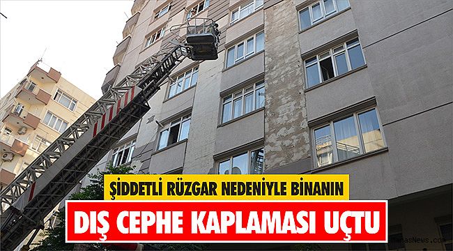 Bulvarı'ndaki apartmanın dış cephe kaplaması, rüzgar nedeniyle koptu. Kaplama, kimsenin
