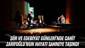 Kahramanmaraş Büyükşehir Belediyesinin 4. Uluslararası Şiir ve Edebiyat Günleri’nde anlamlı bir etkinlik daha edebiyatseverlerle buluşturuldu. Açıldığı günden itibaren binlerce edebiyatseveri ağırlayan uluslararası kültür etkinliğinin 4’üncü gününde, Türk edebiyatının en önemli şahsiyetlerinden ve Yedi Güzel Adam’dan birisi olan Cahit Zarifoğlu’nun hayatını konu alan ‘Yaşamak’ adlı tiyatro gösterisi Necip Fazıl Kısakürek Kültür Merkezi’nde sahne aldı. Yoğun katılımın olduğu gösteride; Hakan Güneri, Serdar Dinçel, Mehmet Güler, Behruz Firuzmand, Hale Üstün gibi usta sinema oyuncuları Cahit Zarifoğlu’nun öğrenim ve yazım hayatını, sosyal yaşantısını sahneye taşıdı. Usta isimler performansıyla katılımcılardan yoğun alkış alırken, etkinliğin çok anlamlı olduğunu belirten sanatseverler Büyükşehir Belediyesine teşekkür etti. Büyükşehir Belediyesinden yapılan açıklamada, 4. Uluslararası Kahramanmaraş Şiir ve Edebiyat Günleri’nin 10 Aralık Pazar gününe kadar devam edeceği ve etkinliklere tüm edebiyatseverlerin davetli olduğu belirtildi.