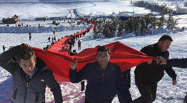 getirilen ve tüm misafirlerin el üzerinde taşıyarak açtıkları dev Türk bayrağı
