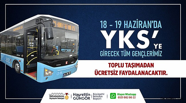 Gerçekleştirilen uygulamayı sosyal medya hesabından duyuran Büyükşehir Belediye Başkanı Hayrettin Güngör, “Sadece sınava odaklanmanız için biz tüm otobüsleri ücretsiz yaptık. Çalışmalarınızın neticesini sınavda başarıyla göstereceğinizden şüphem yok. Tüm yavrularımıza kolaylık diliyorum” ifadelerini kullandı. Kahramanmaraş Büyükşehir Belediyesi, hafta sonu öğrenciler için uygulanacak ücretsiz biniş uygulamasının yanı sıra tüm araçlarıyla seferde olacak. Öğrencilerin sınav yerlerine ulaşımda herhangi bir aksama yaşamaması için toplu taşıma araçlarının sefer sayısının da artırıldığı belirtildi.