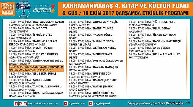 açılışı 14 Ekim 2017 Cumartesi günü olan Kahramanmaraş 4. Uluslar arası Kitap