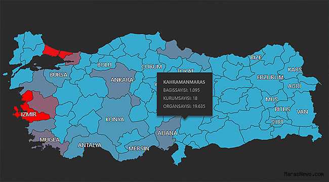 organ sayısının 19 bin 459, bağış sayısının ise bin 86 olduğu Kahramanmaraş’ta