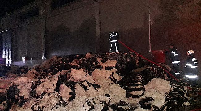 tonlarca balya hasar gördü. Olay hakkında soruşturma başlatıldı.