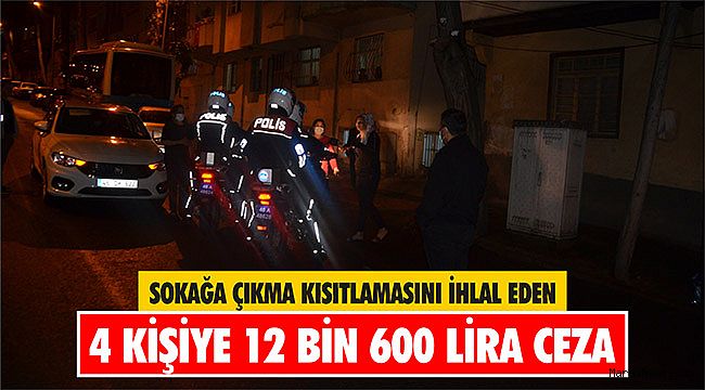 Sokağa çıkma kısıtlamasını ihlal eden 4 kişiye toplam 12