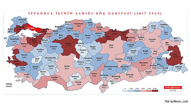 yapılan göç istatistiklerini inceledi. PRNet’in Türkiye İstatistik Kurumu’ndan