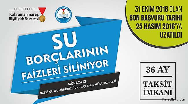 Vatandaşlar su borçlarının yapılandırma işlemlerini KASKİ Genel Müdürlüğü ve KASKİ İlçe Şube Müdürlüklerinde abone numarasıyla yapabilirler. Su borçlarına ilişkin yapılandırma için son başvuru tarihi 25 Kasım 2016. KASKİ Genel Müdürlüğünce, bu tarihten sonra yapılan başvuruların işleme alınmayacağı bildirildi.