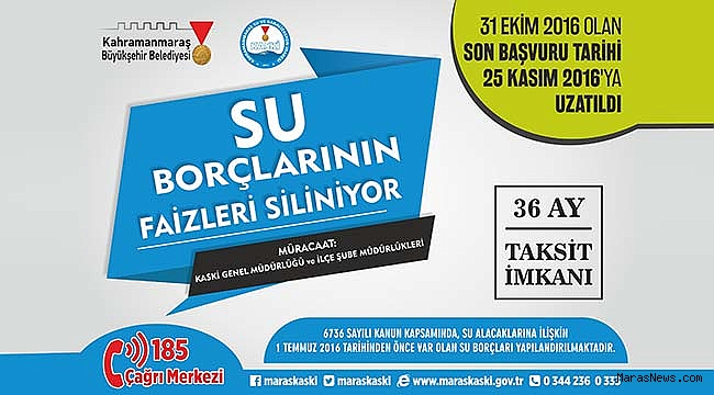 Su borçlarına ilişkin olarak 1 Temmuz 2016 tarihinden