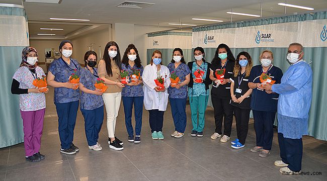 Sular Sağlık Grubu Genel Koordinatörü ve Sular Akademi Hastanesi Başhekimi Binnur Özkar Hastane Başhemşiresi Günay Yanar’a tüm hemşireler adına teşekkür ederek, çiçek takdiminde bulundu. Ayrıca üst düzey yönetim tarafından da ‘kanatsız melekler’ olarak bilinen tüm hemşirelere, çiçek takdiminde bulundular.