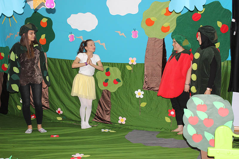 Oyunun başrol oyuncularından KSÜ Çocuk Gelişim Programı Öğrencisi Semanur Yamalı, daha çok sebze ve meyvelerin faydalarını ön plana çıkararak çocukların sevmesine yönelik bir oyun oynadıklarını bildirirken; KSÜ Çocuk Gelişim Programı Öğrencisi Seda Kala ise “Ben oyunda sevmediğim sebze ve meyveleri tanıtıyorum. Ama sonunda bütün sebze ve meyveleri seviyorum ve yiyorum” değerlendirmelerinde bulundu. (HABER-FOTO: KENAN ONARAN)