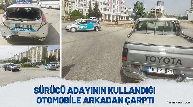 Edinilen bilgiye göre, Dulkadiroğlu İlçesi Doğukent-Güneş Evler mevkiinde sürücü adayının kullandığı eğitim aracına kontrolsüz kavşakta pikap sürücüsü arkadan çarptı. Kazada çarpmanın etkisiyle yaralanan pikap sürücüsü, ihbar üzerine olay yerine gelen sağlık ekipleri tarafından hastaneye kaldırıldı.