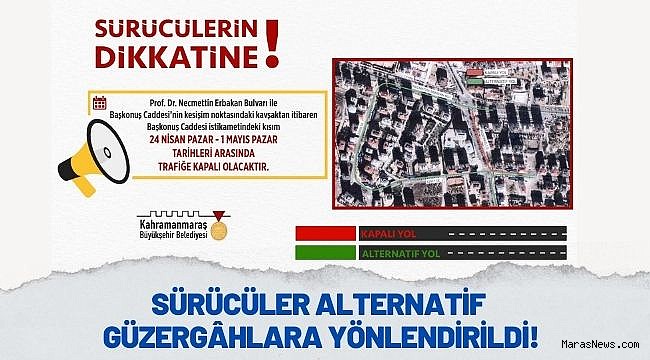 Kahramanmaraş Büyükşehir Belediyesi, KASKİ Genel Müdürlüğü ekipleri tarafından Onikişubat Başkonuş Caddesi’nde bir dizi altyapı çalışması gerçekleştiriliyor. Bu kapsamda alınan UKOME kararları doğrultusunda Prof. Dr. Necmettin Erbakan Bulvarı ile Başkonuş Caddesi’nin kesişim noktasındaki kavşaktan itibaren Başkonuş Caddesi istikametindeki kısmın 24 Nisan – 1 Mayıs tarihleri arasında trafiğe kapalı olacağı belirtildi. Ulaşım Hizmetleri Dairesi Başkanlığı’ndan alınan karara ilişkin yapılan açıklamada, “Büyükşehir Belediyesi KASKİ Genel Müdürlüğü ekipleri tarafından Onikişubat Başkonuş Caddesi’nde bir dizi altyapı çalışması gerçekleştiriliyor. Çalışmalar kapsamında, trafikte meydana gelebilecek aksamalara mahal vermemek adına sürücülerin alternatif güzergâhları tercih etmeleri önem arz etmektedir” ifadelerine yer verildi.