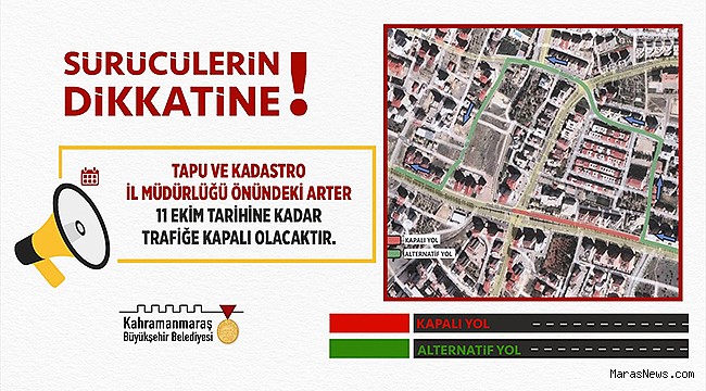 Kahramanmaraş Büyükşehir Belediyesi KASKİ ekipleri, Binevler Caddesi Yenileme Projesi kapsamında Prof. Dr. Necmettin Erbakan Bulvarı’nda bir dizi altyapı yenileme çalışması gerçekleştiriyor. Alınan UKOME kararı doğrultusunda Tapu ve Kadastro İl Müdürlüğü önündeki arterin 11 Ekim tarihine kadar trafiğe kapalı olacağı belirtildi. Ulaşım Dairesi Başkanlığı’ndan karara ilişkin yapılan açıklamada, “Prof. Dr. Necmettin Erbakan Bulvarı’nda gerçekleştirilen altyapı çalışmaları dolayısıyla Tapu ve Kadastro İl Müdürlüğü önündeki arter, 11 Ekim tarihine kadar trafiğe kapalı olacaktır. Çalışmalar kapsamında trafikte meydana gelebilecek herhangi bir olumsuzluğa mahal vermemek için vatandaşlarımızın ulaşımda alternatif güzergâhlara yönelmeleri önem arz etmektedir” ifadelerine yer verildi.