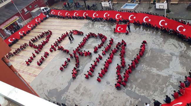 Okul Bahçesinde yapılan etkinlikte iki amaç hedeflenmiştir. Öğrencilere milli bilinç eğitimi verilmesi ve diğer taraftan Mehmetçiğimize moral desteği sağlanması amaçlanmıştır.