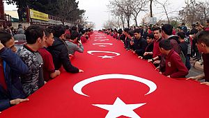 Yapılan etkinlikte okul öğrencileri oluşturdukları kareografi çalışması ile Afrin’deki Mehmetçiğe selam gönderdiler. Daha sonra, öğrenciler tarafından tekbirler eşliğinde komanda marşı okundu. 100 metrelik Türk Bayrağını okul dışında cadde boyunca taşıyan öğrencilere halkımız büyük bir ilgi gösterdi.