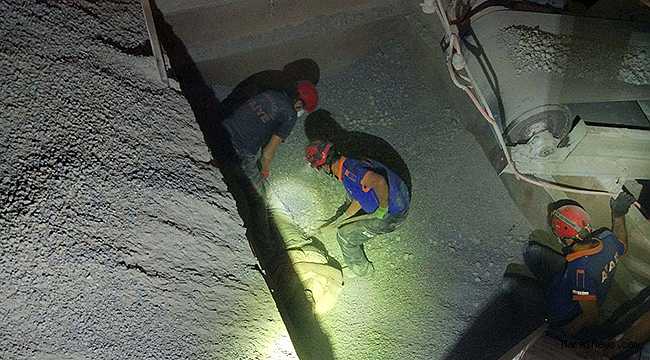 taş kırıntılarını boşalttı. Yaklaşık 3 saatlik bir çalışmanın ardından cansız