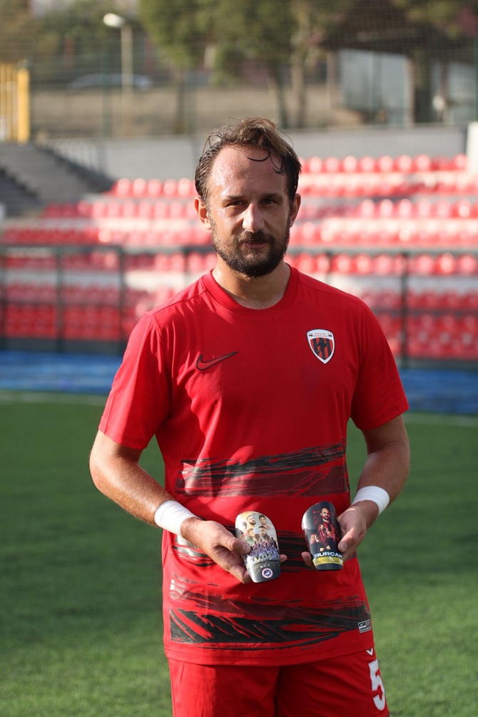 Maç sonrası SHA’ya konuşan Özkanca, tekmeliklerini çıkararak basına poz verdi.