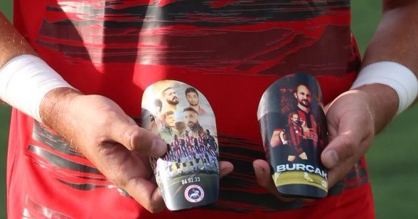 Üzerlerinde ise İstiklalspor arması ve depremde yaşamını yitiren 5 arkadaşının fotoğrafları yer alıyordu.