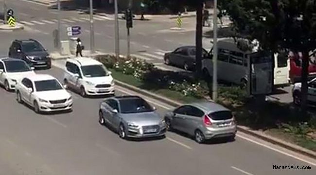 çekildi. Ters yöne giren sürücüye korna çalarak vatandaşlar tepkisini
