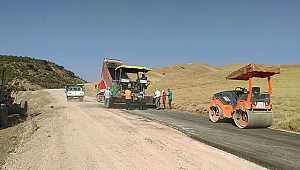 eninde 13 kilometre uzunluğundaki yolda asfalt serim çalışmaları tüm hızıyla