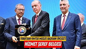 KMTSO Meclis Başkanı M. Hanefi Öksüz’e Hizmet Şeref Belgesi’ni, Cumhurbaşkanı Recep Tayyip Erdoğan takdim etti.