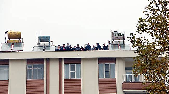 olmazken stadyuma yakın alanlardaki apartman çatıları ise taraftar kaynadı.