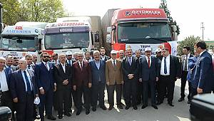 Sürgeç’in dualarının ardından yardım tırları yola çıktı. Törene Başbakan