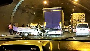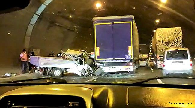 Kaza, Osmaniye-Gaziantep Aslanlı Tünelinde meydana geldi. Edinilen bilgiye göre, Osmaniye’den Gaziantep istikametine seyir halinde olan sürücüleri belirlenemeyen bir otomobil, bir kamyonet ve iki tırın karıştığı zincirleme trafik kazasında 4 kişi yaralandı. Yaralılar olay yerine çağrılan sağlık ekipleri tarafından bölgeye yakın hastanelere kaldırılarak tedavi altına alındı. Kaza nedeniyle kontrollü sağlanan tünel trafiği, hurdaya dönen araçların kaldırılmasına normale döndü.