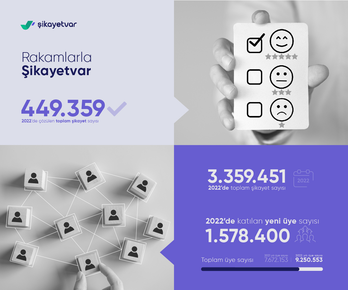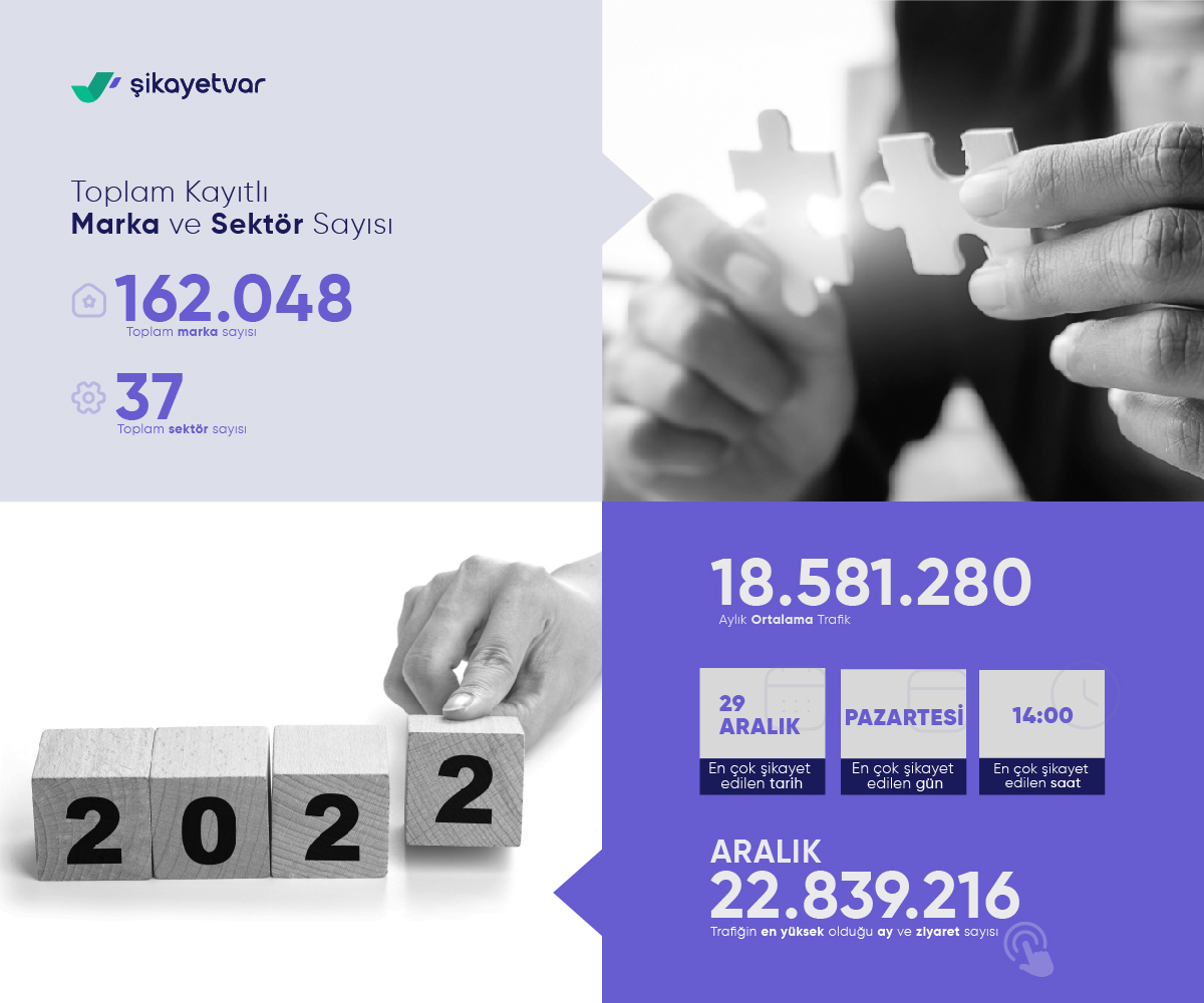Şikayetvar’ın açıkladığı verilere göre 2021’de 150 bin 185 olan kayıtlı marka sayısı 2022’de 162 bin 48’e ulaştı. 2022’de aylık ortalama ziyaretçi sayısı 500 bin artan platformda 18 milyon 581 bin 280 ziyaret gerçekleşti. 2022’de Şikayetvar üzerinden toplam 449 bin 359 şikayet çözüme kavuştu. 2021’de 7 milyon 683 bin 504 olan toplam üye sayısı 2022’de yüzde 24 artışla 9 milyon 250 bin 553’e yükseldi. 2022’de platforma 3 milyon 359 bin 451 şikayet ulaştı. Verilere göre e-ticarette gerçekleştirilen kampanyaların da etkisiyle 22 milyon 839 bin 216 ziyaretçi sayısıyla aralık ayı Şikayetvar trafiğinin en yüksek olduğu olarak öne çıktı.