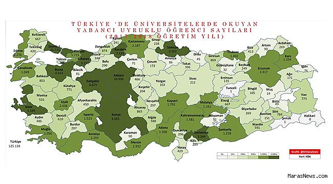 üniversite okuyan yabancı uyruklu öğrenci sayılarına yönelik yapılan
