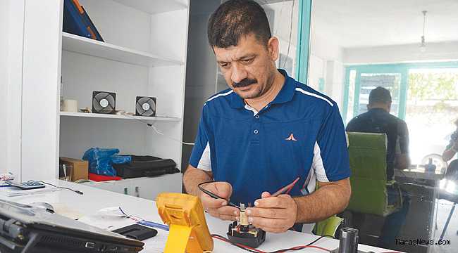 Tunç, bozulan bataryaları tamir ederek eskisi gibi çalışmasını sağlıyor.