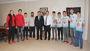 Sporcuları ve Antrenörü tek tek tebrik etti. Elde edilen başarıdan dolayı