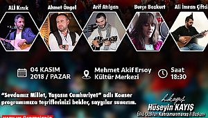 4 Kasım 2018 Pazar Günü, Mehmet Akif Ersoy Kültür Merkezi'nde 18.30 da düzenlenecek olan konserde Ali Kınık, Ahmet Öngel, Arif Atılgan, Burçe Bozkurt ve Ali İmran Çiftçi sahne alacak. Katılımın ücretsiz olduğu konsere tüm Kahramanmaraşlı hemşehrilerimiz davetlidir.