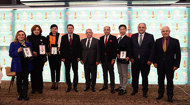 Konuşmacıların sunumlarını tamamlamasıyla konferans sona ererken, Başkan Mahçiçek tarafından konuşmacılara EXPO 2023 özelinde hazırlanan sembol çiçek Maraş Sümbülü ile plaket takdim edildi.