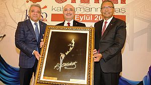 sırma işlemeli Mustafa Kemal Atatürk tablosu hediye etti.