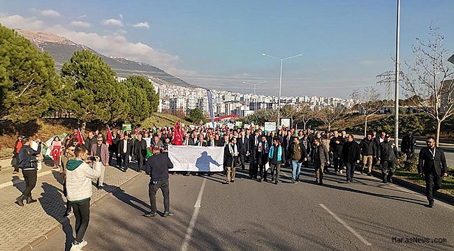 Kahramanmaraş’ta Sütçü İmam Üniversitesi ile Kahramanmaraş İstiklal Üniversitesi Rektörlüğü ortaklaşa Kudüs Yürüyüşü düzenledi.
