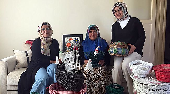 yaşayan Hatice Ünsal, atık gazete, kağıt ve plastiklerden el emeği göz nuru ile