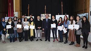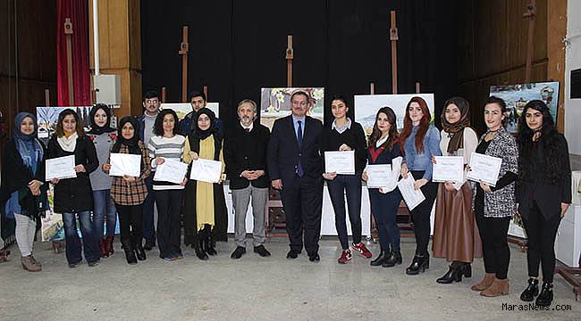 Emeklerinden dolayı İl Kültür Turizm Müdürlüğü Güzel Sanatlar Genel Müdürlüğüne, özelliklede kursun eğitmenliğini yapan KSÜ Güzel Sanatlar Fakültesi Resim Bölüm Başkanı Yrd. Doç. Aziz Erkan’a teşekkür eden Seydihan, “Genç kursiyer arkadaşlarımızı tebrik ediyorum. Kursumuza 15 öğrenci ile başladık ancak 10 tanesi başarılı oldu ve katılım belgelerini takdim ettik. Bu tür özgün çalışmalara 2017 yılı içerisinde de yine devam edeceğiz. Hayırlı olsun diyorum” ifadelerine yer verdi. İmkân ve mekân bakımından düzenlenen kursu ilk duyduklarında heyecanlandığını dile getiren KSÜ Güzel Sanatlar Fakültesi Resim Bölüm Başkanı Öğretim Üyesi Yrd. Doç. Dr. Aziz Erkan, şu açıklamalarda bulundu: “Bu kursu ilk duyduğumuzda gerçekten çok heyecanlandım. İyi bir kurs olması, Kültür Bakanlığı tarafından destekleniyor olması beni heyecanlandırdı. Müthiş bir keyif aldık. Bu kursa öyle bir başlayalım ki bir farkındalık yaratalım istedik. Çünkü şehrimizde pek çok resim kursları var. Bu resim kursumuzu, diğer resim kurslarımızdan farklı olsun istedik; malzemelerimizle, katılımcılarımızla farkındalık yaratalım istedik. Böyle yola çıktık. En iyi malzemeleri sağlayarak, en iyi ortamları sağlayarak iyi bir başlangıç yapalım istedik. Çevreye de örnek olsun diye biraz üstten girdik. Burası daha çok kendini eğlendirecek ya da boş vakit geçireceklerin değil de biraz daha üst düzeyde eğitim almak isteyenlerin yeri olsun istedik. Çünkü bir boşluk varsa onu doldurmak faydalıdır. Bizim için de bu boşluk, üst seviyede bir boşluktu. Onu doldurmaya çalıştık.”(HABER-FOTOĞRAF: KENAN ONARAN)