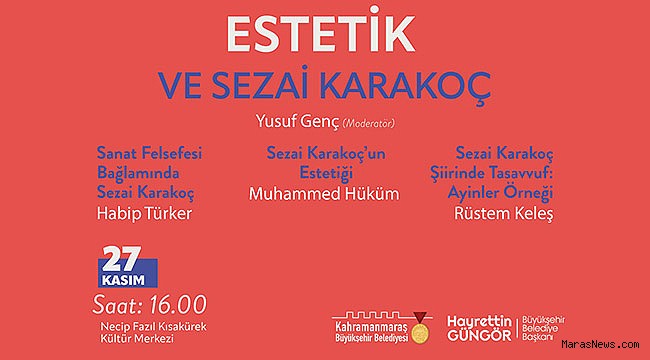 Sezai Karakoç Kolokyumu, 27 Kasım Pazar günü Necip Fazıl Kısakürek Kültür Merkezi’nde Kahramanmaraşlılarla buluşmaya devam edecek. Saat 12.00’da Mimari ve Sezai Karakoç, 16.00’da Estetik ve Sezai Karakoç, 19.00’da ise Sezai Karakoç: Görsel ve İşitsel Sanatlar konulu etkinlikler gerçekleştirilecek. Büyükşehir Belediyesi’nden yapılan açıklamada, düşünce ve fikir insanı Sezai Karakoç’un hayatının, eserlerinin ve sanatının farklı açılardan ele alınacağı söyleşilere tüm edebiyatseverlerin davetli olduğu belirtildi.