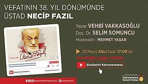 Kahramanmaraş Büyükşehir Belediyesi vefat yıldönümünde Necip Fazıl Kısakürek için anma etkinliği düzenleyecek. Vefatının 38. Yıldönümü münasebetiyle düzenlenecek etkinlikte “Üstat”, edebiyata olan katkıları ve şiirleri olmak üzere pek çok açıdan ele alınacak. Sunuculuğunu Mehmet Yaşar’ın üstlendiği program, Yazar Vehbi Vakkasoğlu ve Doç. Dr. Selim Somuncu’nun katılımıyla gerçekleşecek. 25 Mayıs Salı (yarın) düzenlenecek çevrimiçi etkinlik Büyükşehir Belediyesi YouTube hesabından canlı yayınlanacak.