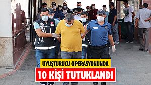 Satışa hazır halde sentetik uyuşturucu, eroin, esrar ve hapın ele geçirildiği operasyonda gözaltına alınan 10 zanlı tutuklandı. (AA)
