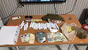 Operasyonda satışa hazır vaziyette 32 paket halinde 940 gr esrar maddesi, 2 bin