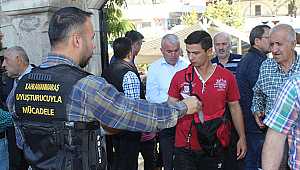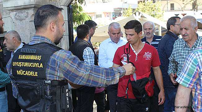 Namazı sonrası Ulu Cami önünde bilgilendirme çalışması yaptı. Narkotik timleri,