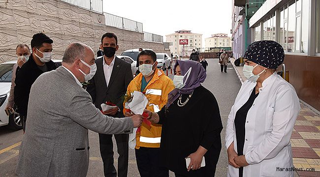 Vali Coşkun, hekimlerin ve sağlık çalışanlarına çiçek dağıtarak, 14 Mart Tıp