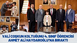 Vali Coşkun ise burada yaptığı konuşmada, Gazi Mustafa Kemal Atatürk'ün 23 Nisan Bayramını tüm dünya çocuklarına armağan ettiğini ve bu bayramında dünyada tek çocuk bayramı olduğunu belirterek, “Geleceğimizin teminatı olan siz sevgili çocuklarımıza çok güveniyoruz. Sizler gelecekte ülkemizi yönetiminde söz sahibi olacaksınız. Dolayısıyla bizlerde çocuklarımızın iyi bir şekilde yetiştirilmesi ve hayata hazırlanması için gayret gösteriyoruz. Bugün de Ulusal Egemenlik ve Çocuk Bayramı sebebiyle Ahmet Ali Haydaroğlu isimli öğrencimize valilik makamını devretti. Bu vesile ile aziz milletimizin ve tüm çocuklarımızın bayramlarını tebrik ediyorum” dedi.